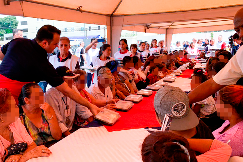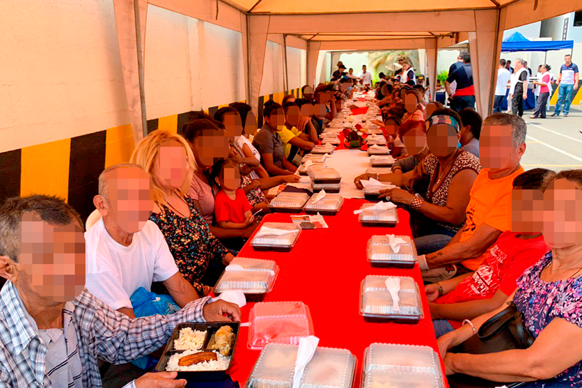 A continuación, el Obispo, realizó una oración general en favor de cada uno de los presentes, bendiciéndoles en todo y a sus familiares. Posteriormente, las personas fueron llevadas a un comedor al aire libre, donde se sirvieron un almuerzo, además de un plato con frutas de los diseños del Garnish que decoraba la mesa, los niños también recibieron una bolsita de caramelos y juguetes mientras que los adultos otra de pan.