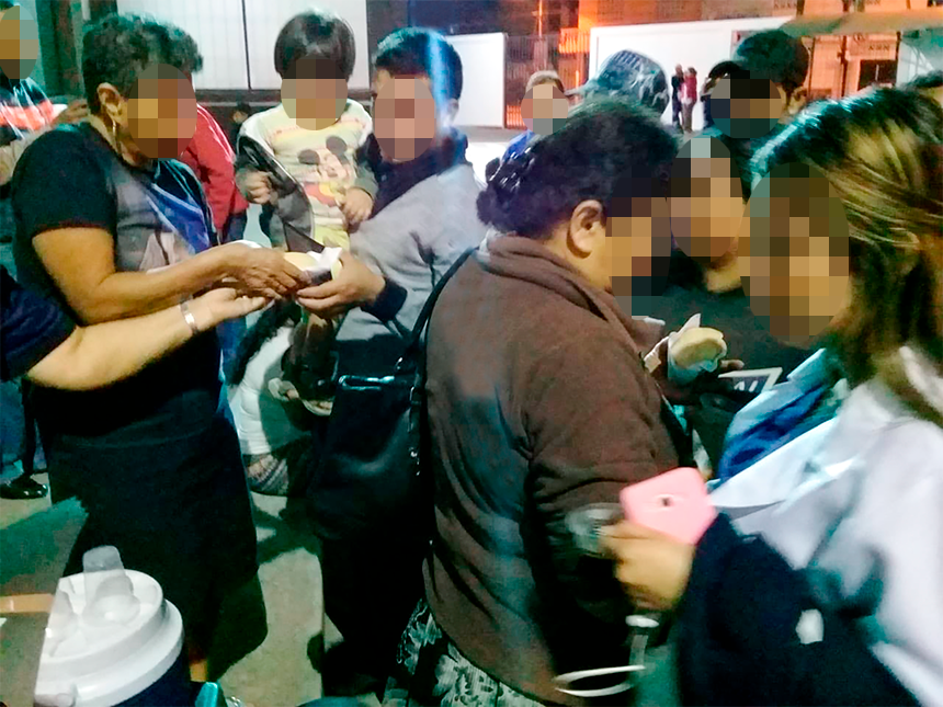 Después, los voluntarios se dispusieron a dar un delicioso café con sanduche, previamente preparado con mucho cariño, para calmar el hambre.