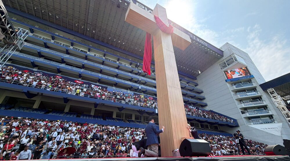 El Viernes Santo, se llevó a cabo el “Encuentro de las Familias al Pie de la Cruz” en la ciudad de Guayaquil, reuniendo a más de 35.000 personas en el Estadio George Capwell. En un ambiente de solemnidad y Fe, se realizó la distribución del “Aceite de la Luz”, acompañado de una bendición especial para todo el pueblo ecuatoriano, en un mensaje centrado en la renovación espiritual y la fortaleza en tiempos difíciles.