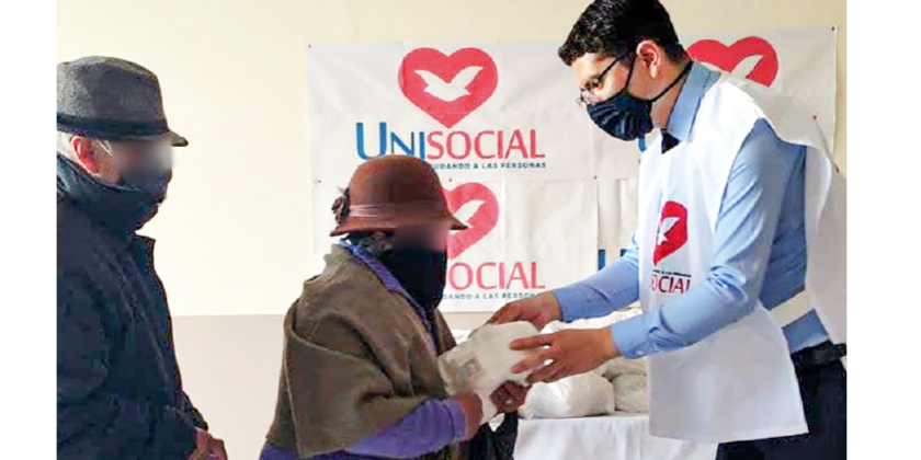Es por eso que la Unisocial extiende su mano en la ciudad de Machachi donde fueron beneciadas muchas personas, recibiendo fundas con alimentos no perecibles, además brindaron tarrinas de comida a personas de escasos recursos.