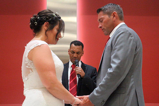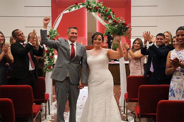 Pero, durante ese tiempo, Casey empezó a participar en las reuniones realizadas por Universal en esa cárcel. El día en el que la primera iglesia fue inaugurada, él estaba allí y ha participado en todas las reuniones desde entonces. Obedeciendo a las enseñanzas y orientaciones de los pastores, hoy, un año después, Jesús lo liberó y lo libró de la prisión, y, para la gloria de Dios, el día del 15 de junio realizamos su matrimonio.