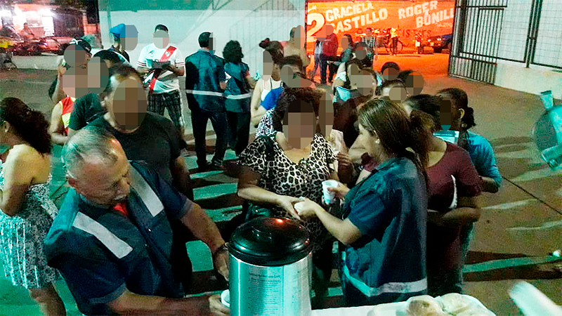 Posteriormente, todos recibieron sánduches y un vaso con café caliente, el mismo que fue preparado por los voluntarios que semana a semana, ayudan con esta obra.